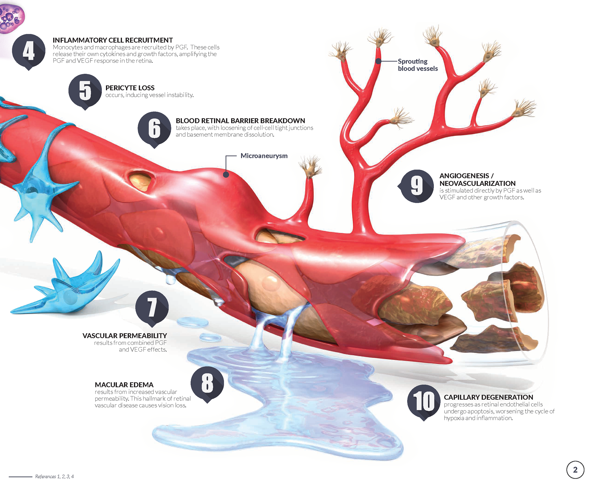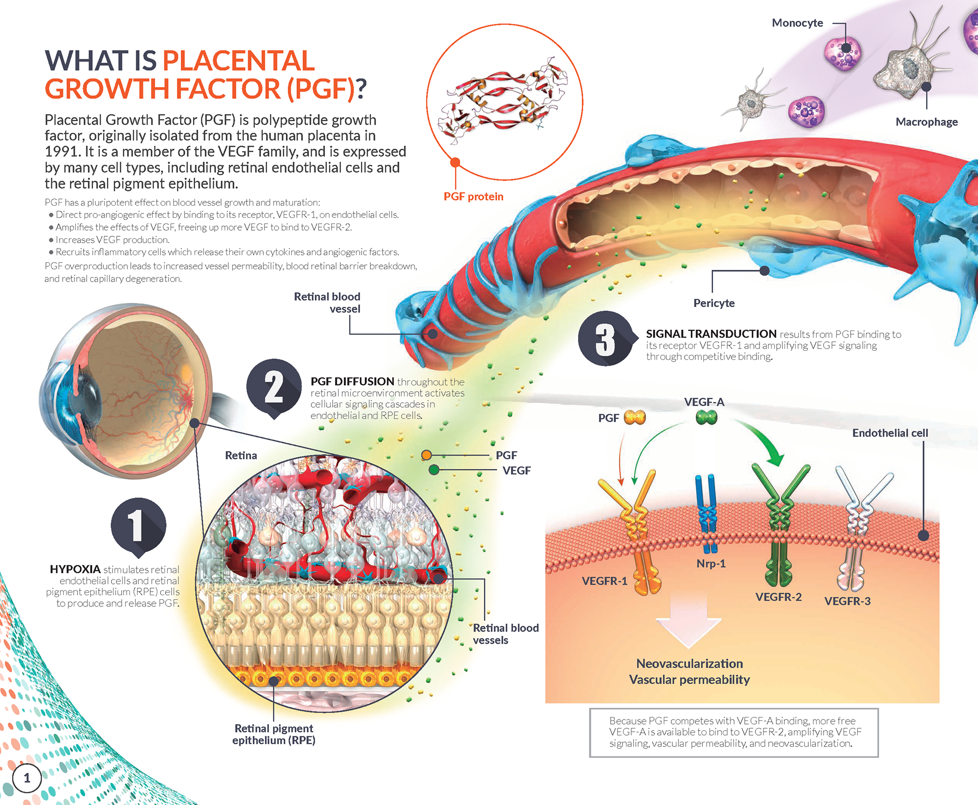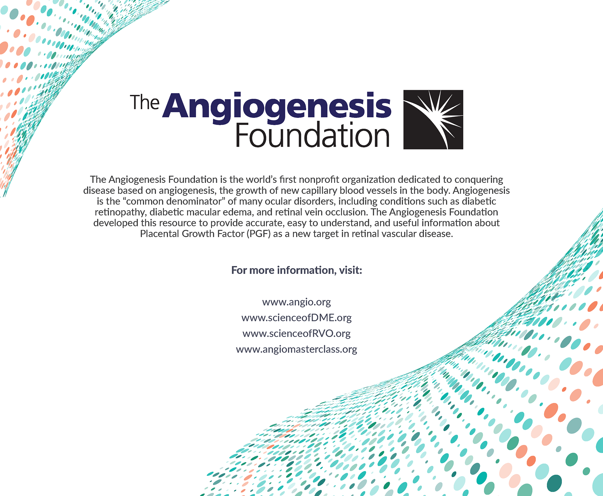 This brochure was designed to help clinicians understand Placental Growth Factor as a target in retinal vascular diseases. All content was produced with the Angiogenesis Foundation and artist Emily Cooper. Images © the Angiogenesis Foundation.